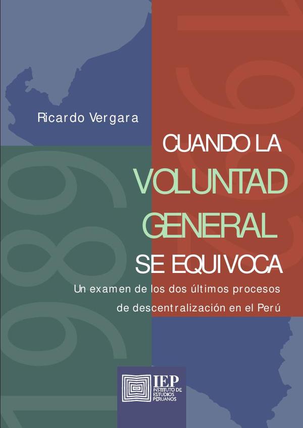 Cuando la voluntad general se equivoca explora las razones que llevaron al fracaso nuestros dos últimos procesos de descentralización. Tanto el intento de la década de 1980 como el de inicios del siglo XXI jamás generaron los beneficios que prometieron. ¿Por qué fracasaron? Ricardo Vergara, viejo lector de Hegel, responde desde el mundo de las verdades afectivas. Las reformas de descentralización en el Perú se construyeron desde un malestar antilimeño combinado con culpa limeña. Ambos intentos fueron resultado mucho más un estado de ánimo que de la existencia de actores políticos y económicos interesados en la construcción de su propio destino regional. Esta es una investigación fundamental para acercarnos a la, muy poco estudiada, capacidad de los actores políticos para cometer errores y reincidir en ellos.